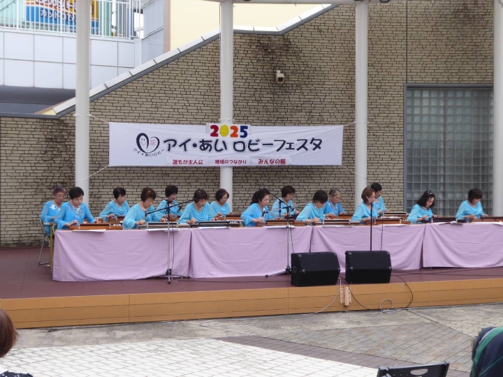 泉佐野市長南公民館クラブ発表会開催中、2階エレベーターホールにて毎年恒例になってる大正琴ミニコンサートを白百合教室の皆さんが開きました。